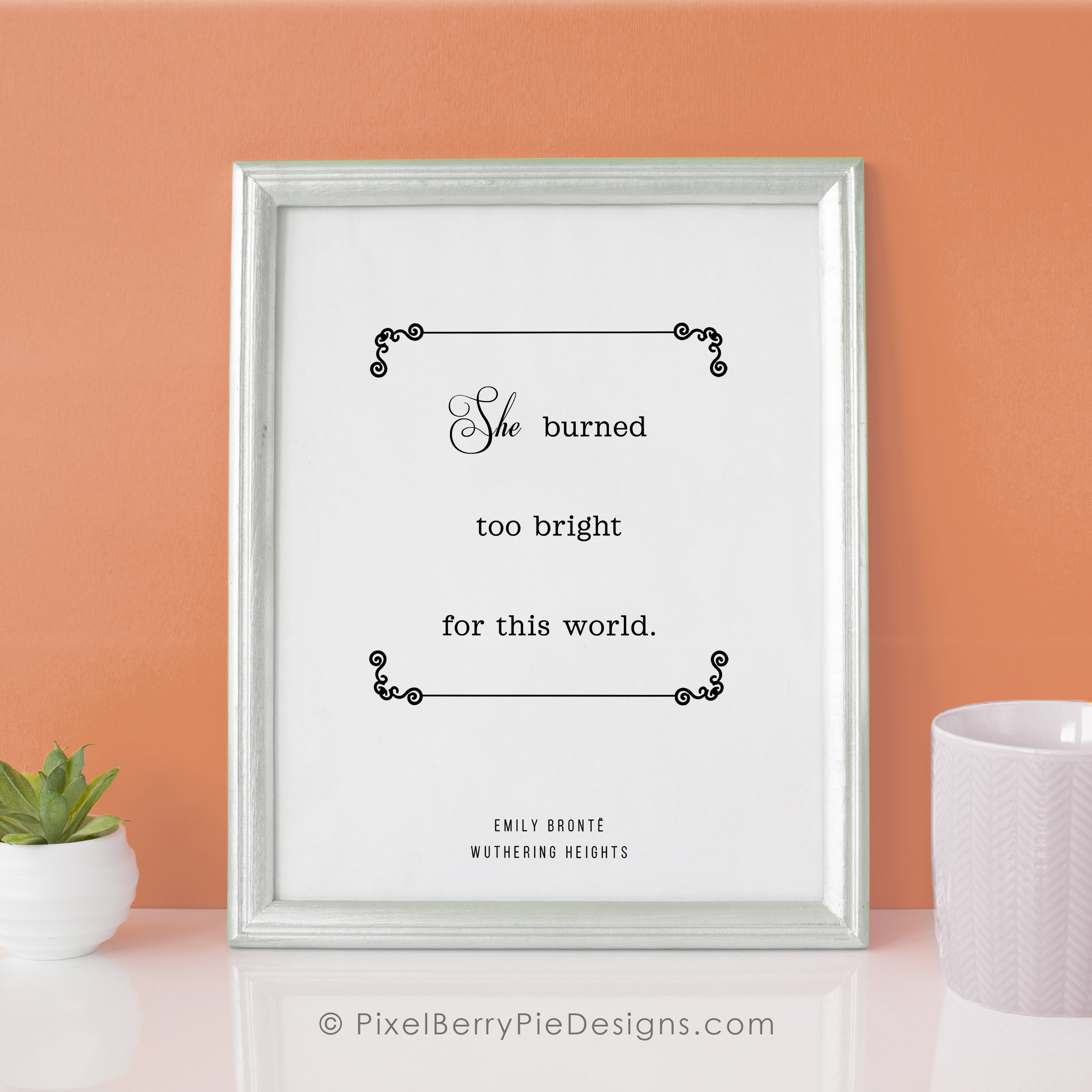 “She burned too bright for this world” Emily Brontë Quote Print, Wuthering Heights // 8×10 Art Print